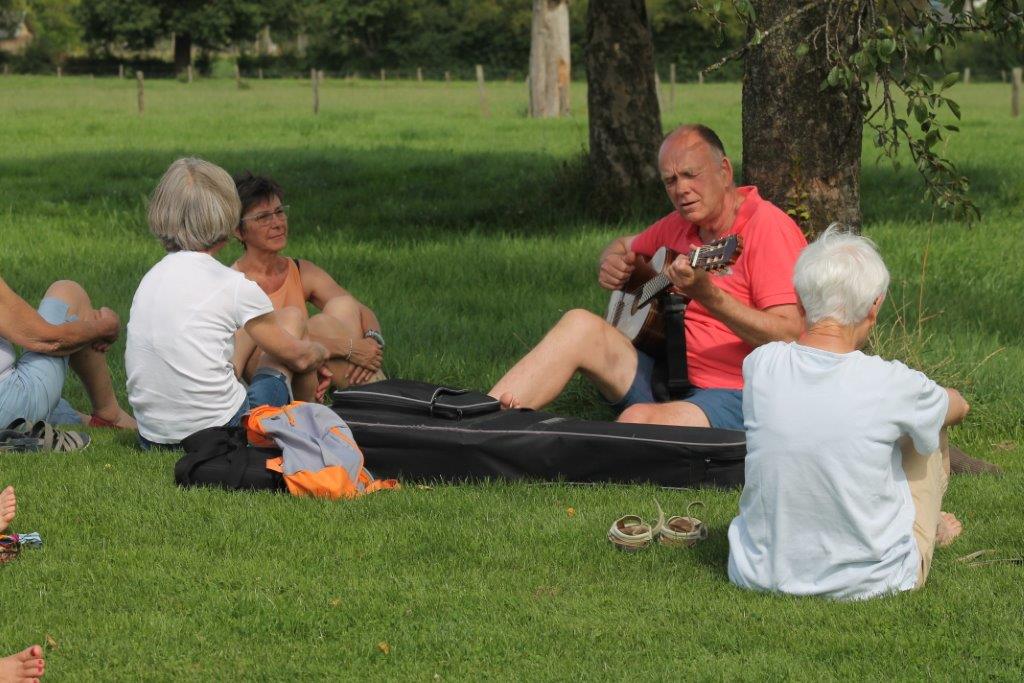 Vous apprendrez à faire votre pain au levain, votre pain de graines sans gluten, votre moutarde, votre pétillant de mélisse, votre ricotta au lait cru issu de la ferme, votre kéfir de fruits, … Facile et tellement savoureux ! Vous pourrez pratiquer le Tai Chi et le Qi Gong au quotidien avec Marc, sillonner les alentours boisés et cueillir des plantes sauvages avec Jacques, moniteur de marche nordique et vous initier à la sylvothérapie avec Françoise.