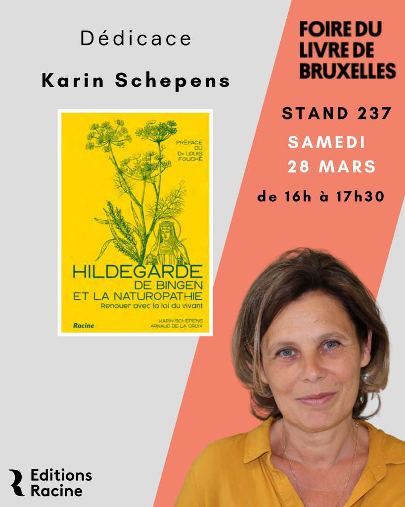 Samedi 28 mars, de 16h à 17h30, je dédicacerai à la Foire du Livre de Bruxelles mon livre : Hildegarde et la naturopathie, renouer avec la loi du vivant.