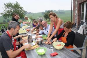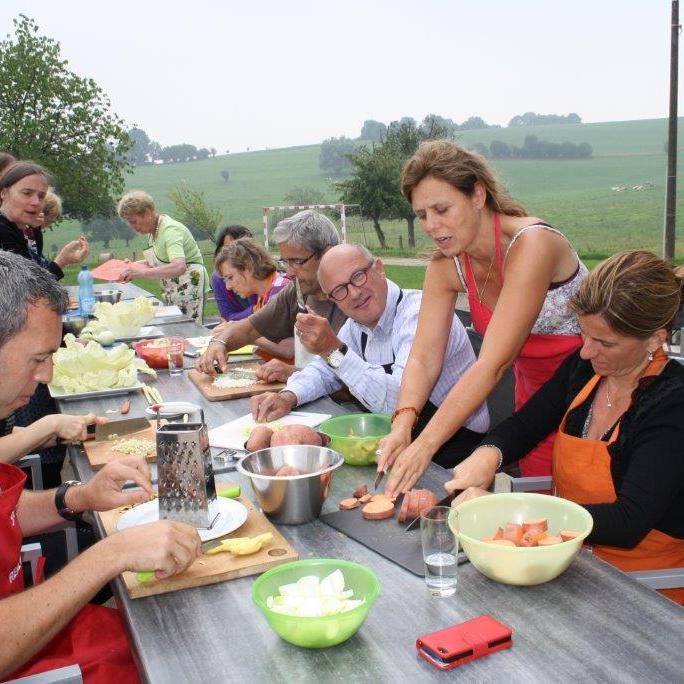 Un grand merci pour avoir si bien soigné nos appétits durant cette semaine, un peu exploratoire pour certains et totalement confirmée pour d’autres. En ce qui me concerne, j’ai gardé un magnifique souvenir de cette semaine, dans une région que je ne connaissais pas (je connais quasi le monde entier mais pas le « Pays de Herve” – ridicule!). Je vais m’atteler à refaire quelques recettes, me roder dans les graines, germées, quinoa et autres … tout nouveau pour moi. Merci pour cette découverte santé !